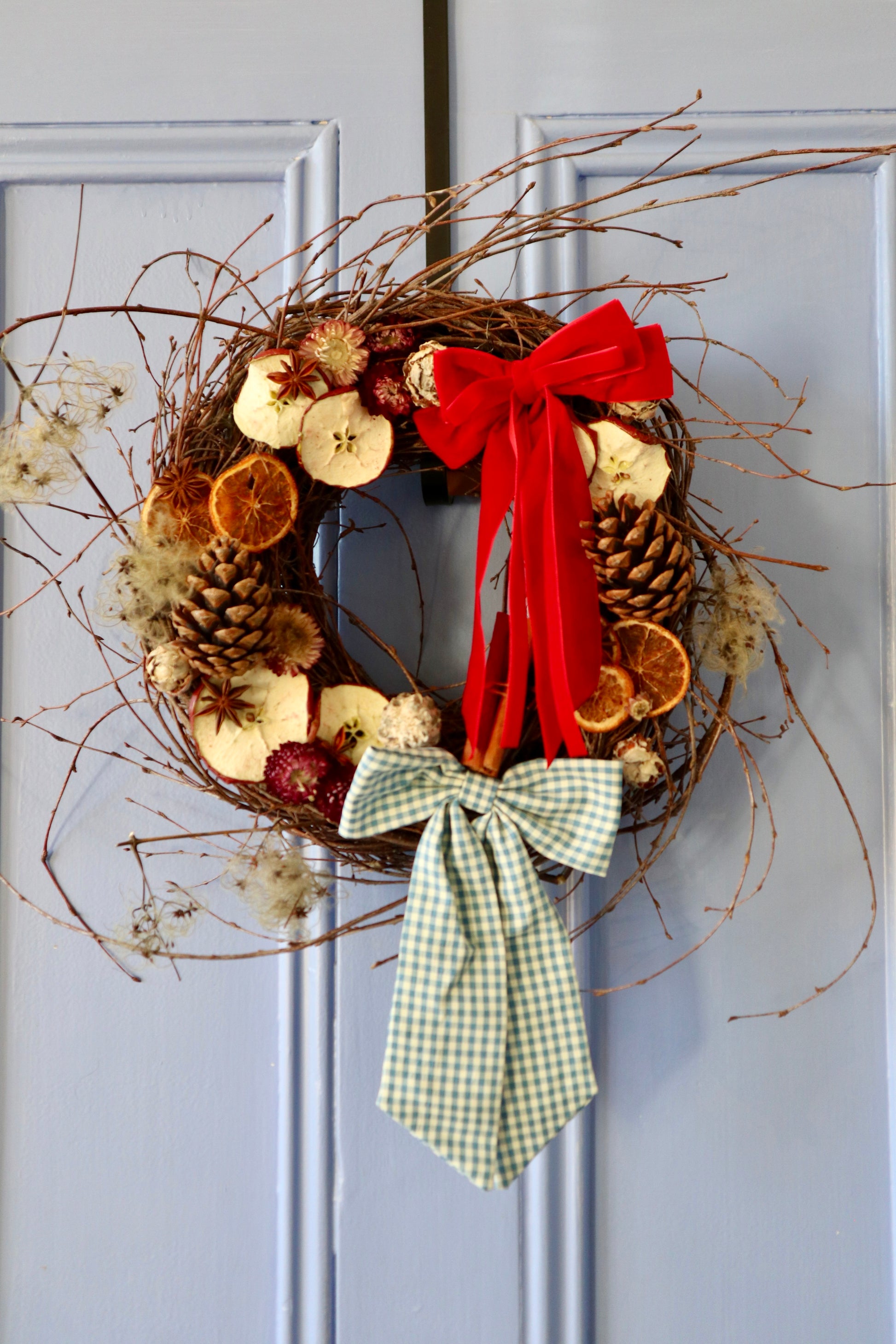 The Crate's Dried Christmas Wreath pays homage to all of the beautiful, rich colours and scents of the festive season with a little French flair in it’s gingham and velvet bows!