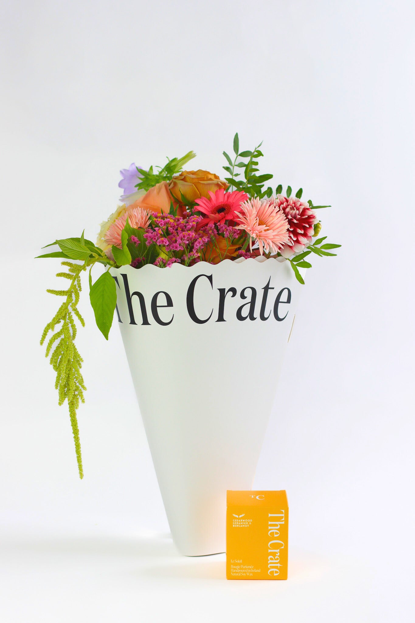 Add The Crate's Bespoke Candle -Le Soleil Cedarwood, Geranium & Bergamot or a cylinder glass vase (or both!) to your order to create a beautiful floral gift set.